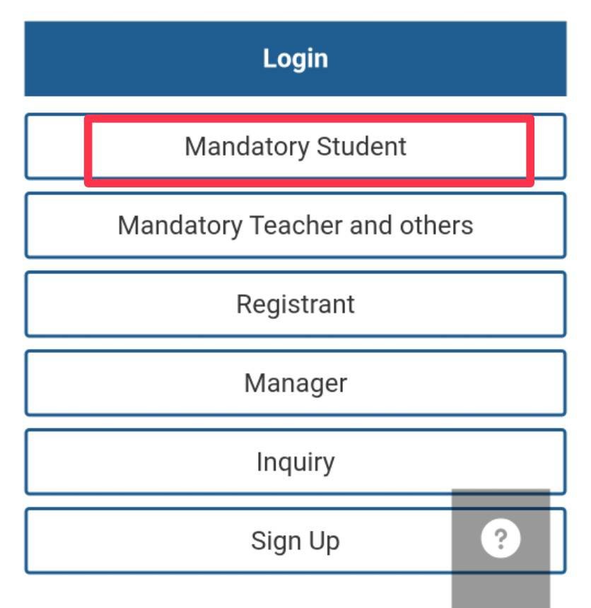 *If you are the first time entering the platform, then please select "Mandatory Student", and fill "Student ID Number" as your account & the last 5 digits of your Student ID Number as your password.*